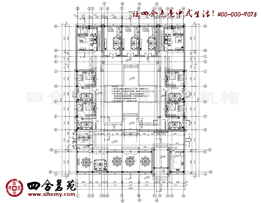 飛檐翼角、華榱璧珰,庭院四面圍合,房屋錯落,庭院融入元素構(gòu)建設(shè)計(jì)表情,旨在給觀者更多園趣與體驗(yàn)。